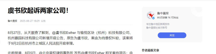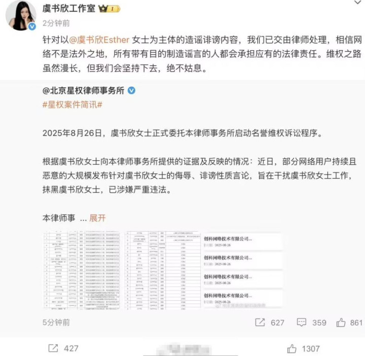 近日,虞书欣接连不断地将那些侵犯自己权利的人告上法庭。