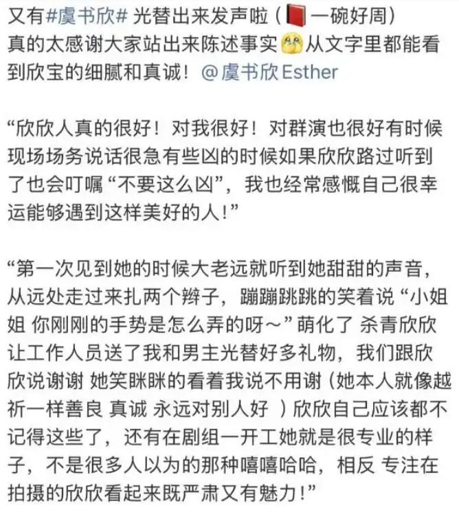 外加,多名之前剧组人员站出来为她发声。