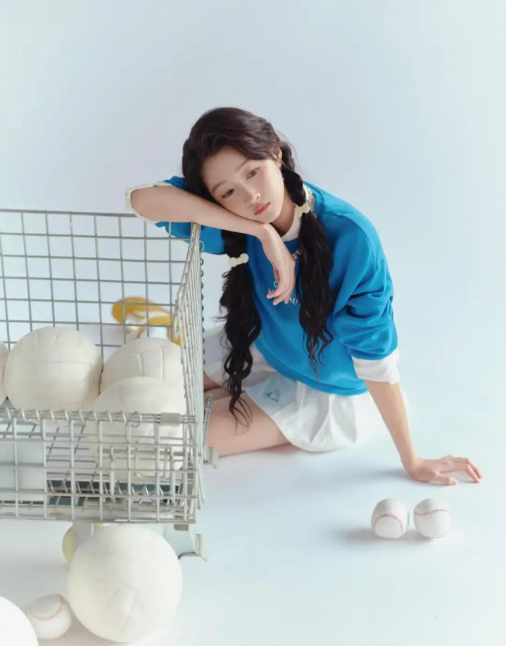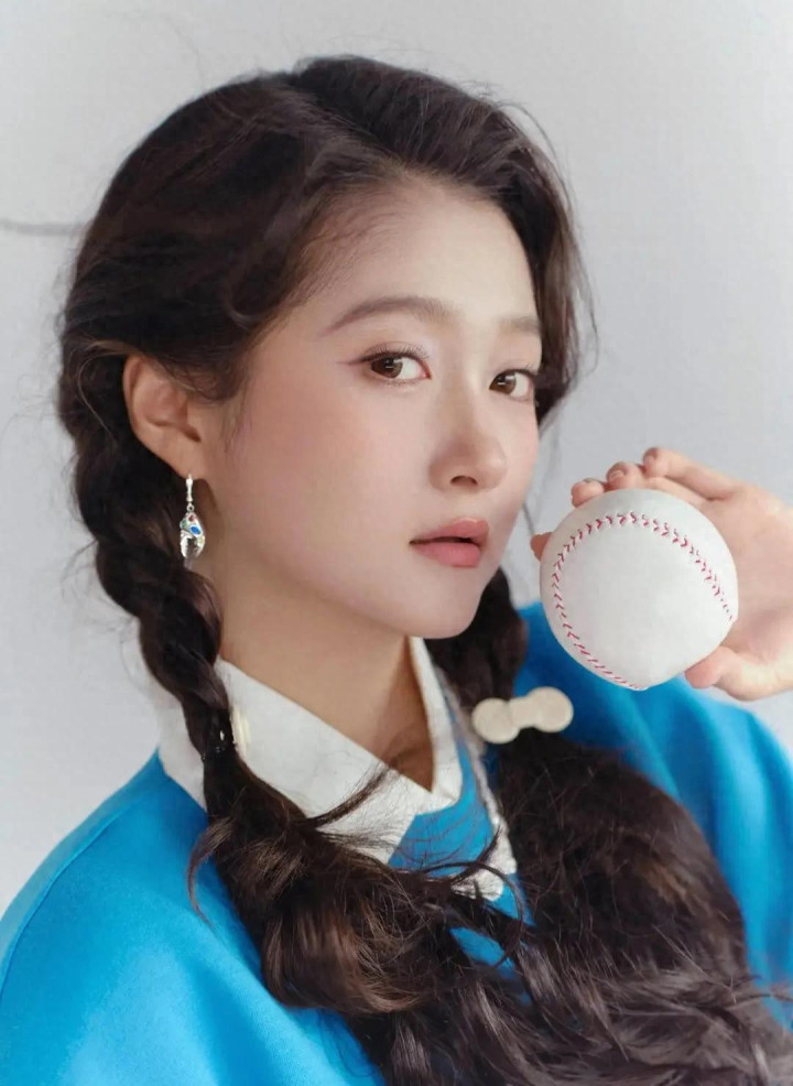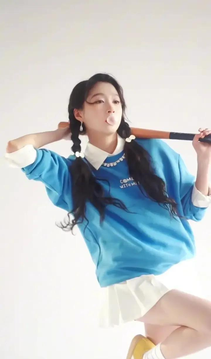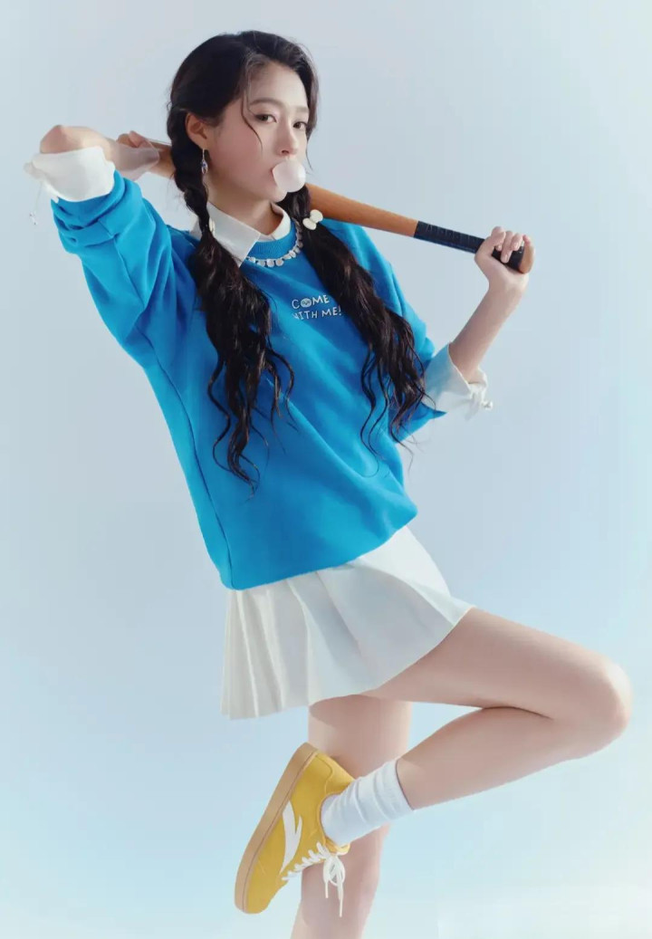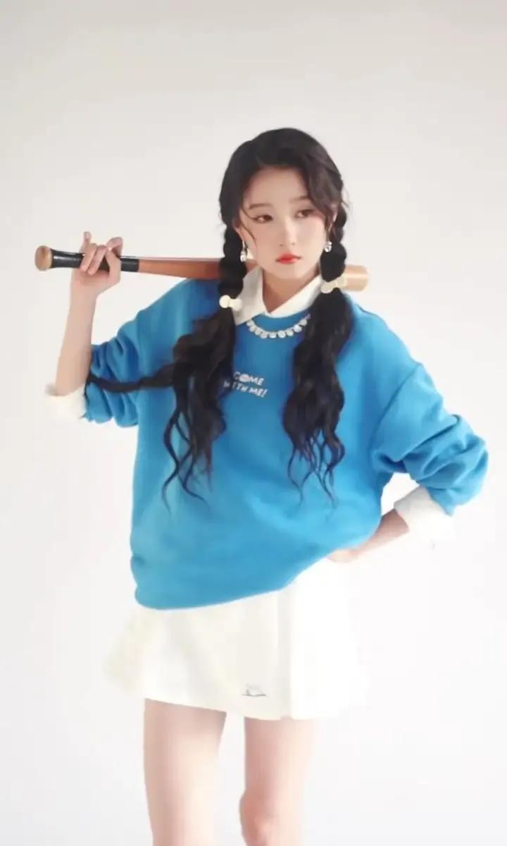 关晓彤蓝卫衣白短裙造型, 双麻花辫配运动风, 活力感拉满