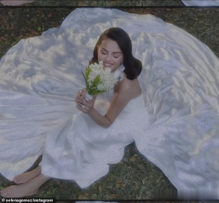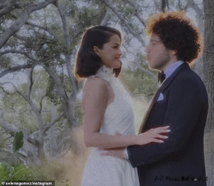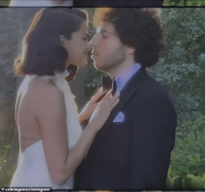当天早些时候,赛琳娜晒出了她和未婚夫本尼的亲密合照,照片中赛琳娜穿着一条挂脖的白色缎面拖地长裙,她把头发做成一个很复古的发型,头上没有戴头纱。