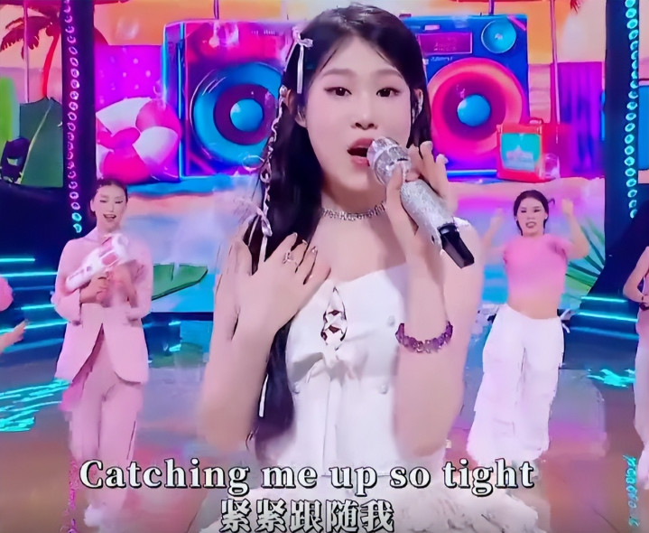 徐怀钰独唱《踏浪》,一开口“啦啦啦”就跑调了,后面的声音虚到发飘。
