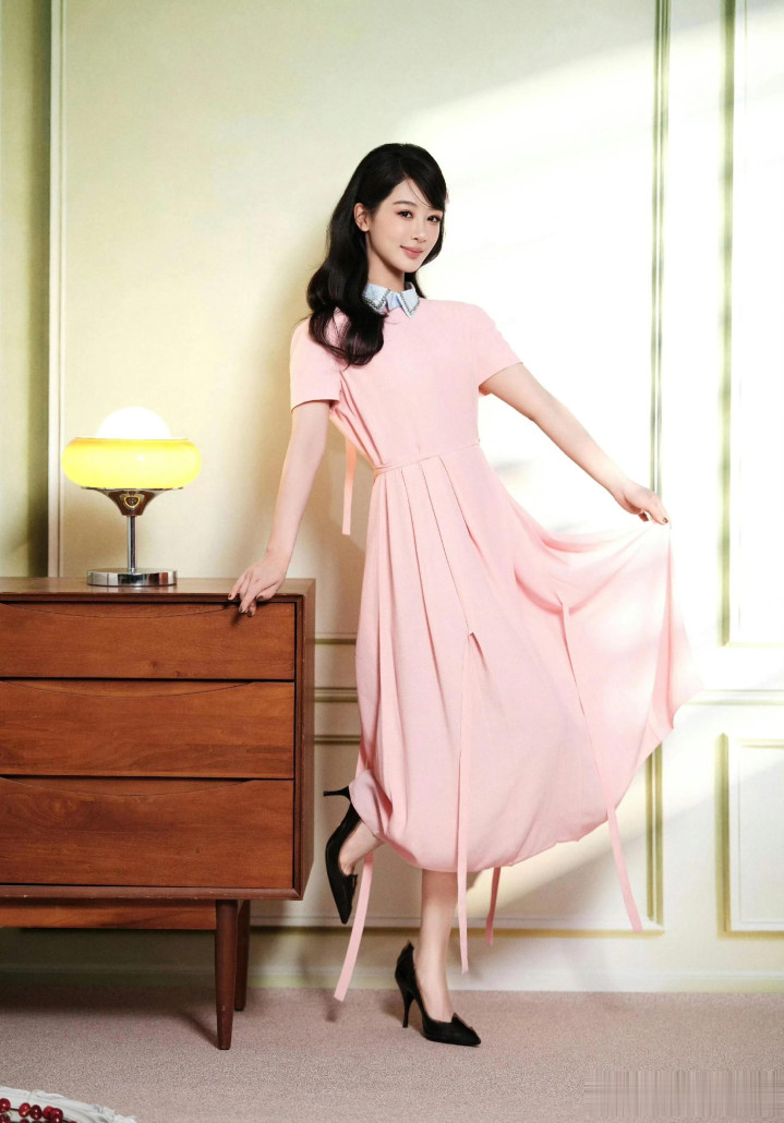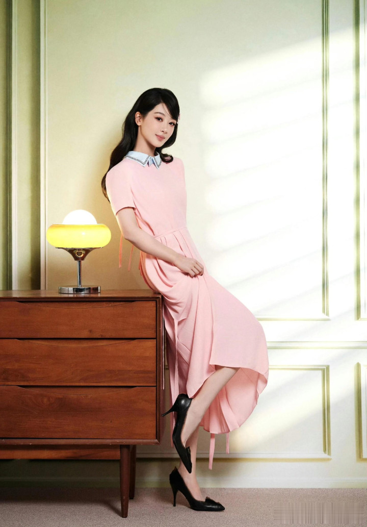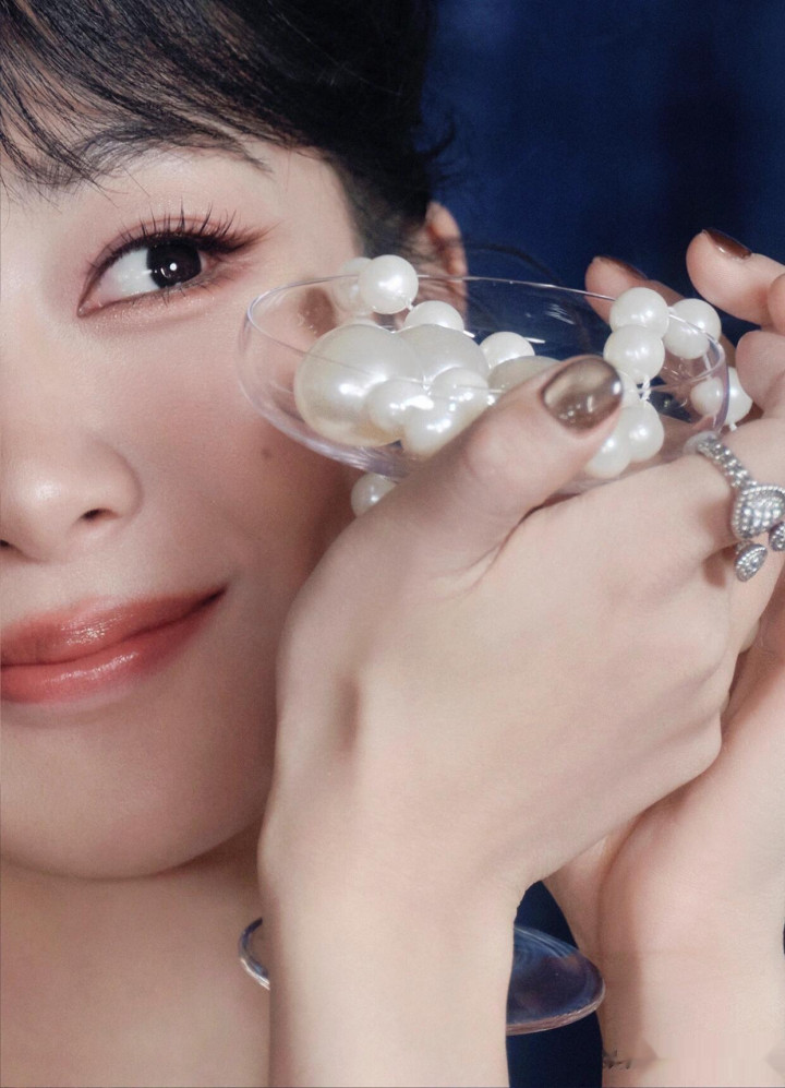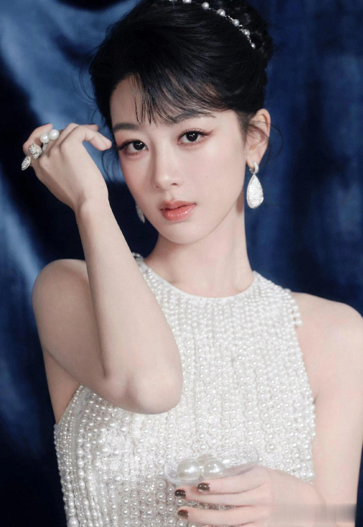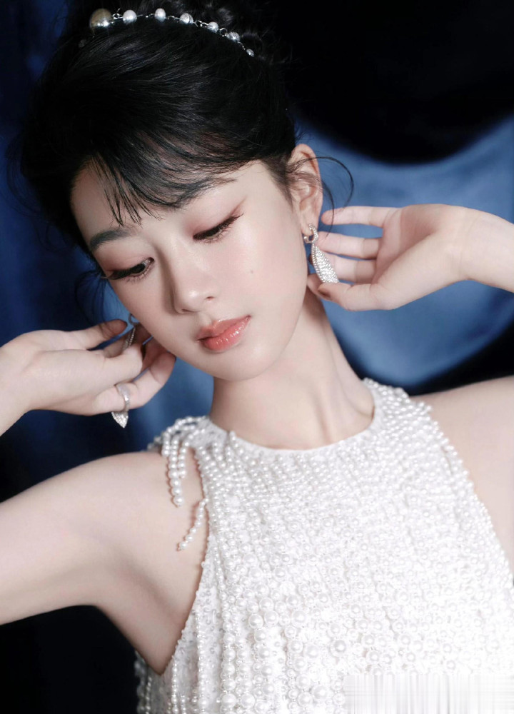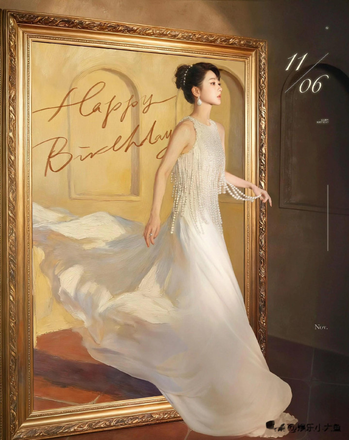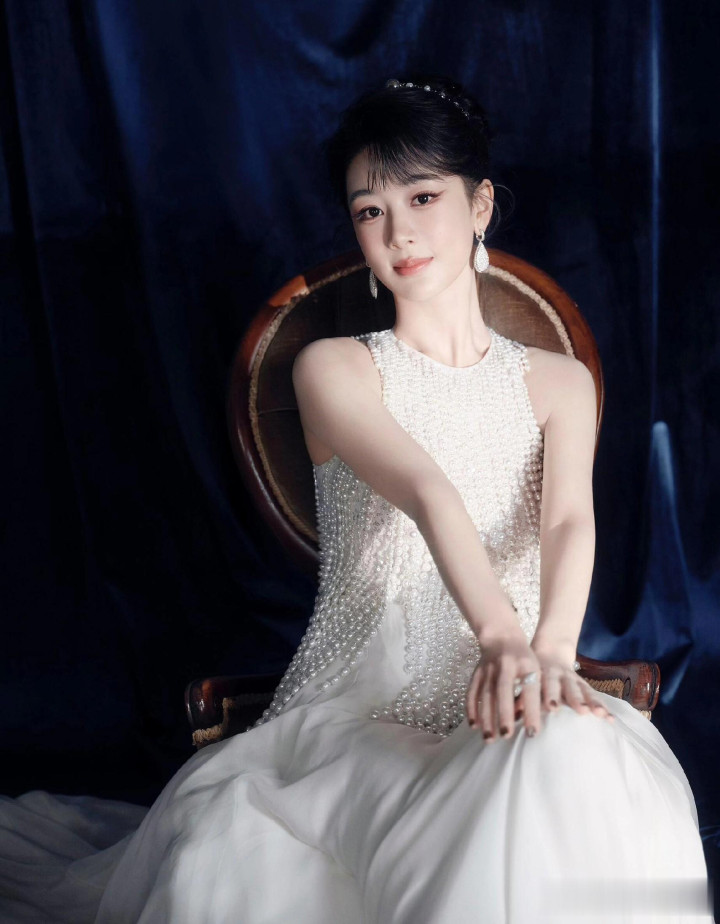 杨紫生日高定大片, 一袭珍珠流苏白裙, 盘发配珍珠耳饰美成白月光