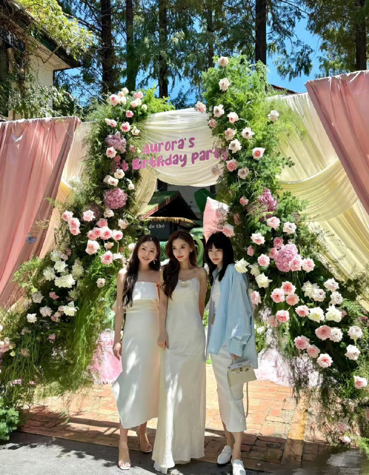 baby参加好友女儿生日宴, 仅披发配吊带长裙就超级美, 状态很好