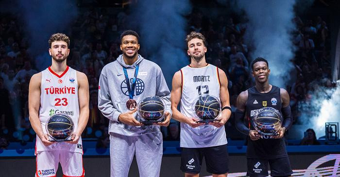 赛后,同时入选最佳阵容的字母哥和施罗德拥抱致意。对此,施罗德表示:“扬尼斯的举动非常暖心,他主动找到我,对我说我们代表着各自的国家——德国与希腊。他随希腊队获得了首枚奖牌。我对他唯有敬意。他拥有4个可爱的孩子、始终陪伴他的妻子以及和他并肩作战的兄弟们。他在NBA的成就完全是另一个层面的——他是世界最佳球员之一。他能主动来找我交谈,展现了卓越的体育精神。他说他看过我们的YouTube视频,我认为这种互动对希腊和德国篮球都是件很棒的事。”