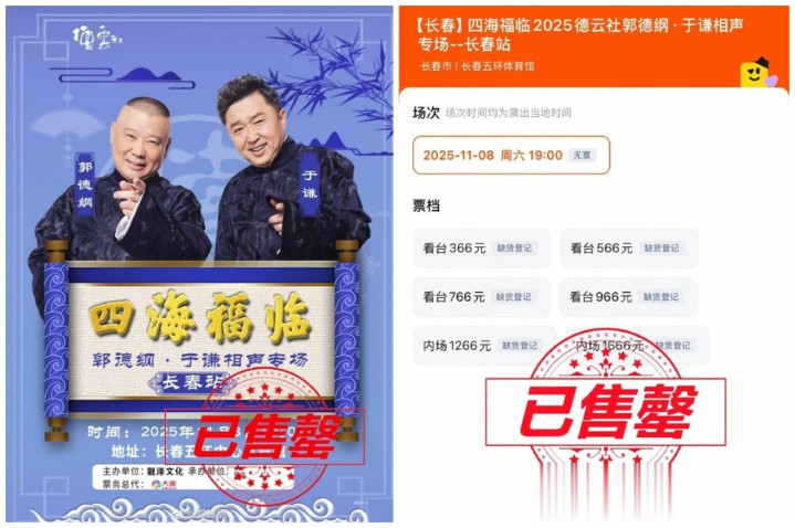周五晚,郭德纲在吉林市有京剧演出。门票在刚刚售罄,郭德纲第一时间发文,公布了这个好消息。周六晚,郭德纲在长春有相声专场。昨日,郭德纲晒出了门票售罄的海报和截图。三份聘书,两场演出,郭德纲长春之行,收获满满,令人羡慕。当你能够做出成绩的时候,全世界都会与你为伍。